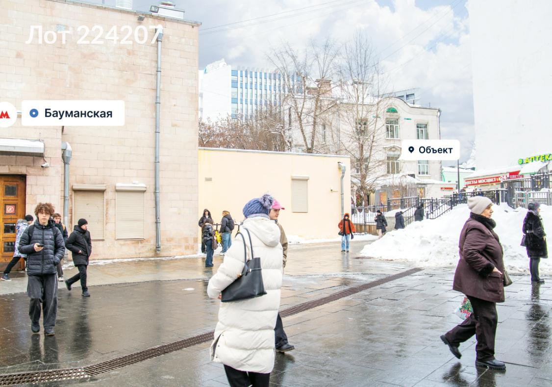 Лот № 224207 Предлагается на продажу коммерческая недвижимость, расположенная по адресу: улица Бауманская, Центральный административный округ города Москвы.Объект находится в непосредственной близости от станции метро «Бауманская», до которой можно добраться менее чем за одну минуту пешком.В районе наблюдается интенсивное автомобильное и пешеходное движение, что обеспечивает высокую проходимость и хорошую транспортную доступность.Помещение обладает значительным рекламным потенциалом, предоставляя возможности для размещения рекламных вывесок и других информационных носителей.
